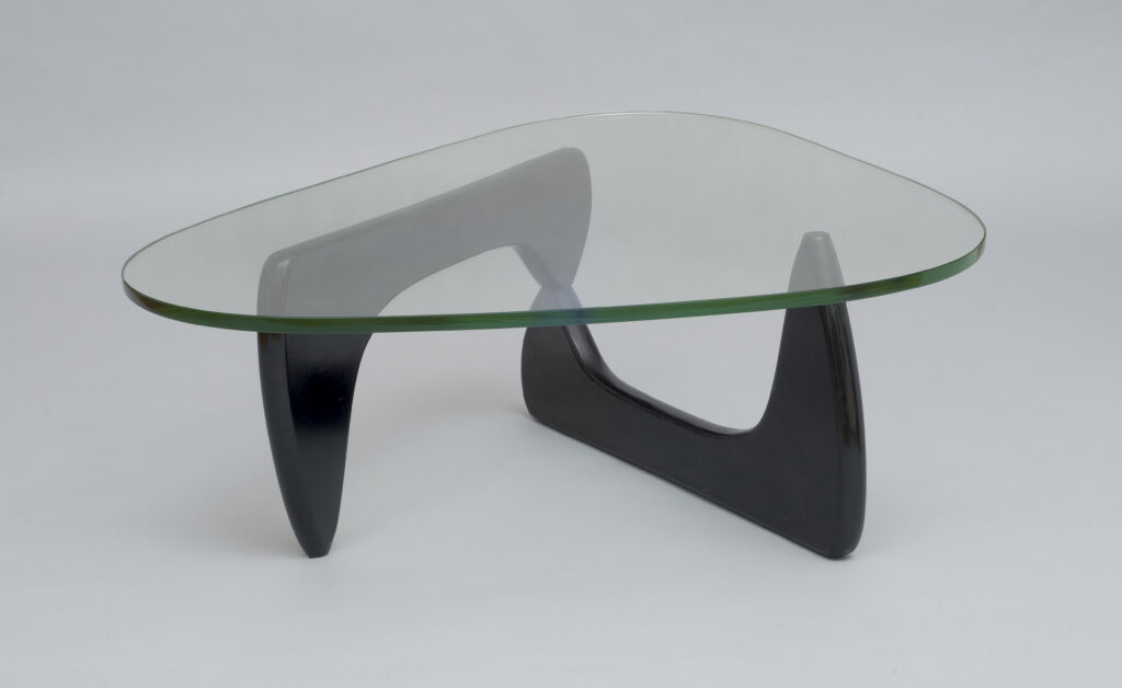 | Designed by Isamu Noguchi (American, 1904–1988), manufactured by Herman Miller Furniture Company (Zeeland, Michigan, established 1923), Coffee Table (IN-50), designed 1944, this example made ca. 1947–1953, ebonized birch, glass, and aluminum, High Museum of Art, Atlanta, gift of Fredna and Ricardo Cottingham, 1998.34 a-b. © 2026 The Isamu Noguchi Foundation and Garden Museum, New York / Artists Rights Society (ARS), New York. |