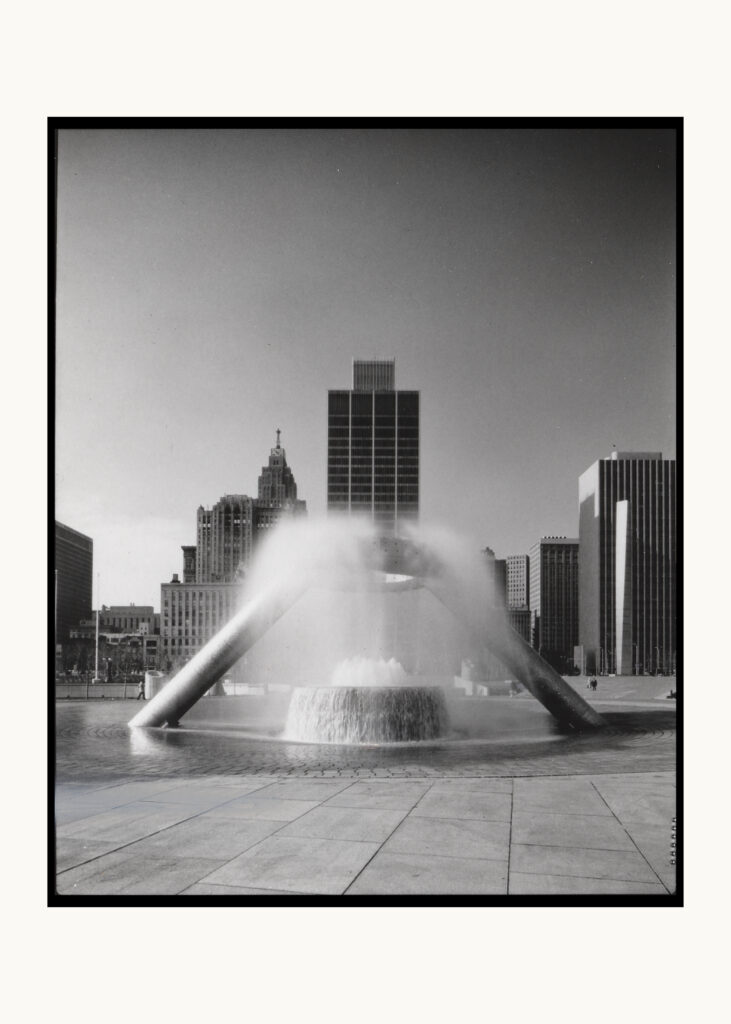 Designed by Isamu Noguchi (American, 1904–1988) with Shoji Sadao (American, 1927–2019), Horace E. Dodge Fountain, Philip A. Hart Plaza, Detroit, 1971–1979. The Noguchi Museum Archives, 02126. © 2026 The Isamu Noguchi Foundation and Garden Museum, New York / Artists Rights Society (ARS), New York.