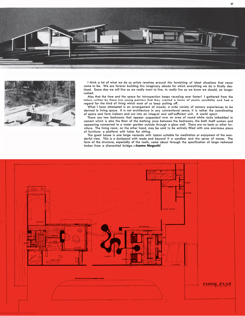 “House by Isamu Noguchi and Kazumi Adachi,” with photos by Vlad Balabanov, in Arts & Architecture 72, no. 11 (November 1955): 26. © 2007–2025 David F. Travers (assigned to Travers Family Trusts). Used with permission. © 2026 The Isamu Noguchi Foundation and Garden Museum, New York / Artists Rights Society (ARS), New York.