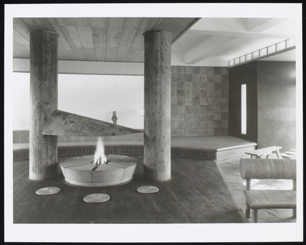 | Designed by Isamu Noguchi (American, 1904–1988) with Yoshirō Taniguchi (Japanese, 1904–1979), Shin Banraisha, Keio University, Tokyo, 1950. Photo by Chuji Hirayama / The Noguchi Museum Archives, 12903. © 2026 The Isamu Noguchi Foundation and Garden Museum, New York / Artists Rights Society (ARS), New York. |