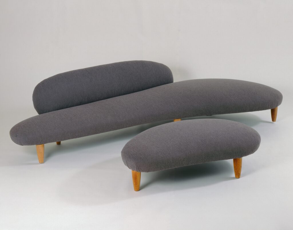 | Designed by Isamu Noguchi (American, 1904–1988), manufactured by Herman Miller Furniture Company (Zeeland, Michigan, established 1923), Couch (IN-70) and Bench (IN-71), designed 1948–1949, made 1949–1951, wood, maple laminate, and replaced cotton upholstery, Milwaukee Art Museum, gift of Gilbert and J. Dorothy Palay. Photo by Efraim Lev-er. © 2026 The Isamu Noguchi Foundation and Garden Museum, New York / Artists Rights Society (ARS), New York. |