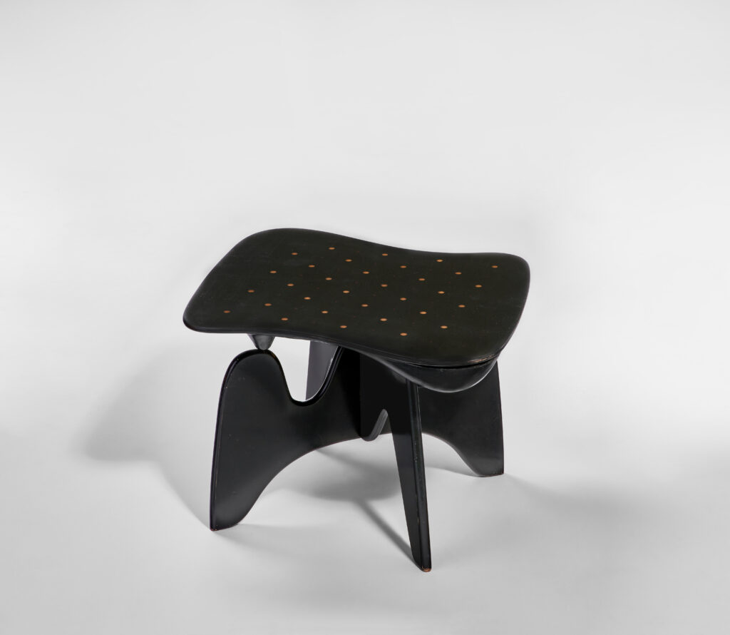 Designed by Isamu Noguchi (American, 1904–1988), manufactured by Herman Miller Furniture Company (Zeeland, Michigan, established 1923), Chess Table (IN-61), designed 1944, made 1947–1949, ebonized wood laminate, aluminum, paint, and acrylic, collection of Robert Munch. © Christie’s Images / Bridgeman Images. © 2026 The Isamu Noguchi Foundation and Garden Museum, New York / Artists Rights Society (ARS), New York.