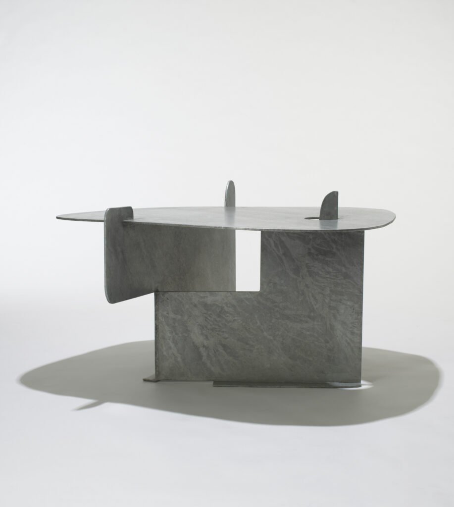 Designed by Isamu Noguchi (American, 1904–1988), edition produced by Peter Carlson Enterprises (Los Angeles, California, 1971–2010), published by Gemini G.E.L. (Los Angeles, California, established 1966), Pierced Table, started 1982, published 1983, hot-dipped galvanized steel; eleven from an edition of eighteen, private collection. Photo by Joshua White / JWPictures. © 2026 The Isamu Noguchi Foundation and Garden Museum, New York / Artists Rights Society (ARS), New York.