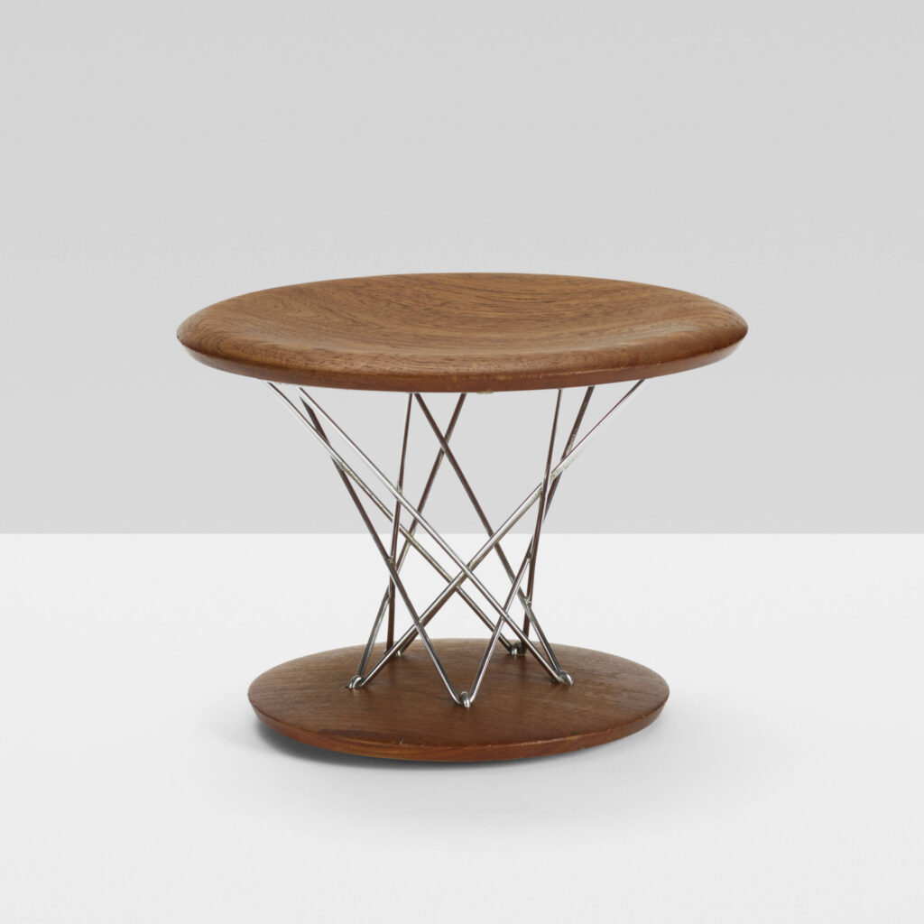| Designed by Isamu Noguchi (American, 1904–1988), manufactured by Knoll Inc. (New York, New York, established 1938), Small Rocking Stool (model 85-T), designed 1954–1955, made 1956–1957, birch and chrome-plated steel, collection of Robert Munch. Image courtesy of Rago / Wright. © 2026 The Isamu Noguchi Foundation and Garden Museum, New York / Artists Rights Society (ARS), New York. |
